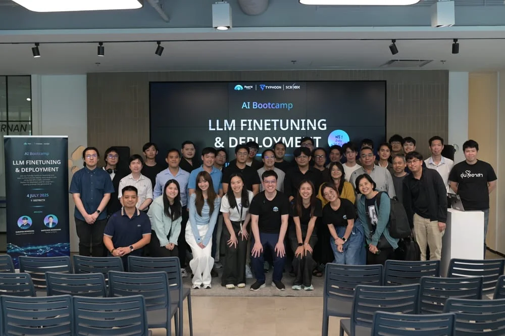 On Friday, July 4th, 2025, Float16 in collaboration with the Typhoon SCB 10X team organized the AI Bootcamp: LLM Finetuning & Deployment at DistrictX, FYI Building. This event marked a significant milestone in promoting AI technology development in Thailand. The bootcamp received overwhelming interest and was successfully completed beyond expectations.