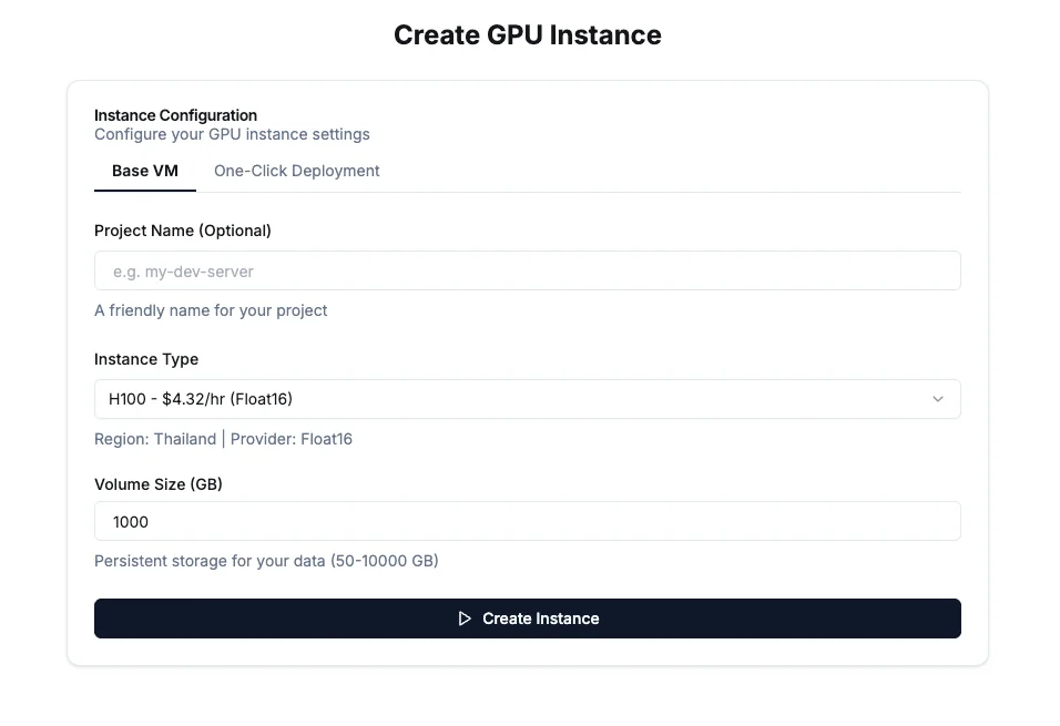 GPU instance ถือเป็นหนึ่งในหมุดหมายสำคัญของ Float16 เหตุผลสำคัญคือ GPU instance ของ Float16 ใช้งาน VM-Liked เป็นพื้นฐาน ทำให้สามารถใช้งาน Container Technology ข้างในซ้อนอีกทีหนึ่งได้ ไม่ว่าจะเป็นการใช้งาน Docker, Podman หรือ K8S ก็สามารถใช้งานได้