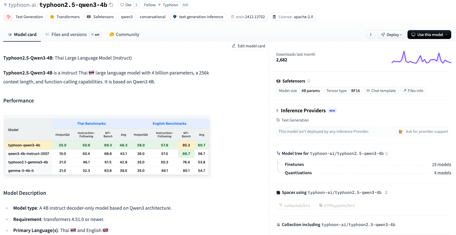 scb10x/typhoon2.5-qwen3-4b AI ตัวนี้มีขนาด 4 Billion Parameters