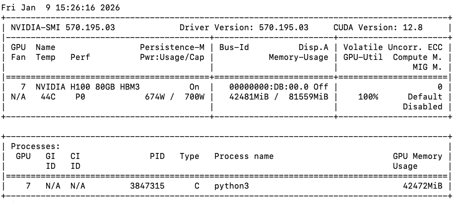 เราสามารถเห็นได้ว่า GPU utilization อยู่ที่ 100% และ Power consumption อยู่ที่ 95%++ ซึ่งตีความได้ว่าเรารีดประสิทธิภาพของ GPU ใบนี้ได้เกือบ 100% แล้วนั้นเอง
