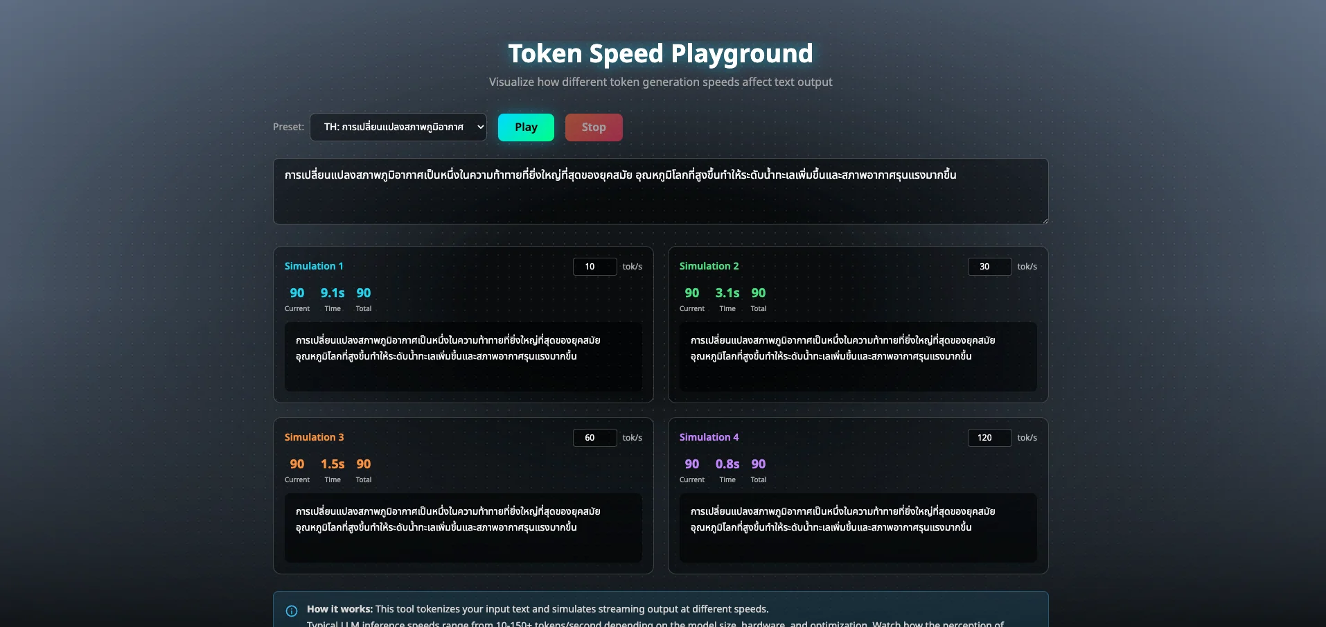 สำหรับการ visualize tok/s ว่าเร็วแค่ไหนถึงจะเพียงพอ สามารถทดสอบ visualization ได้ผ่าน เว็บไซต์